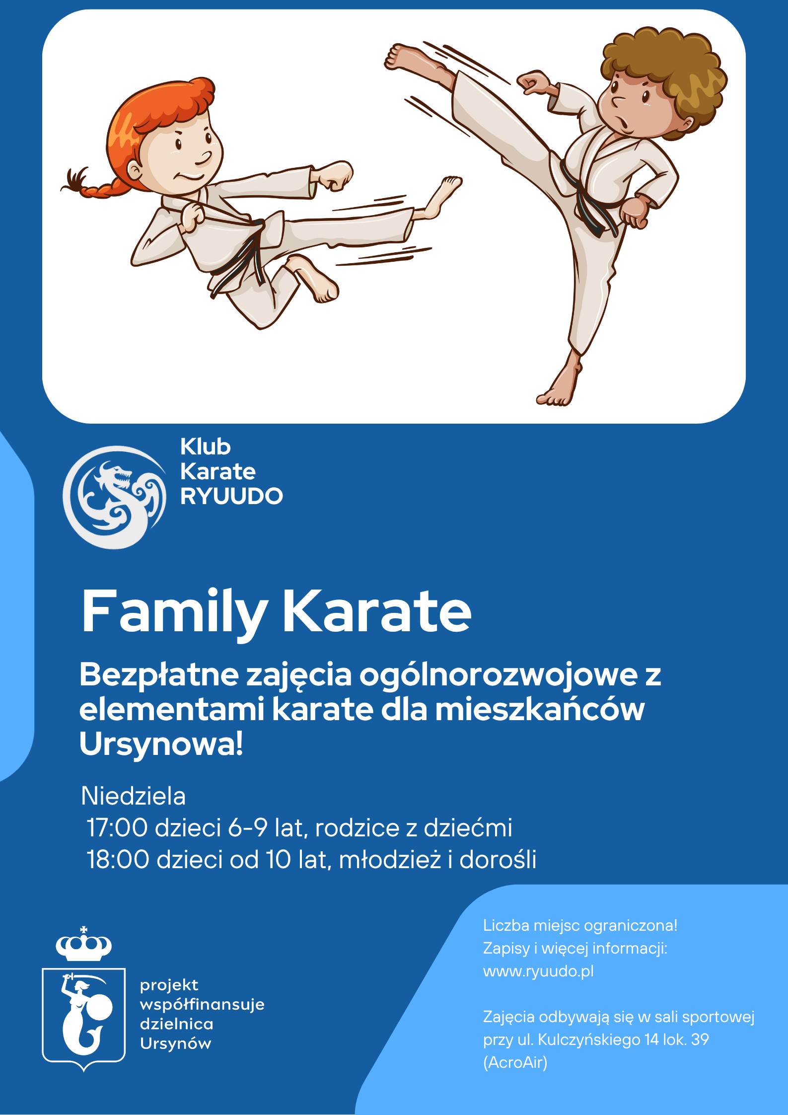 Zaraz po Wielkanocy ruszamy z bezpłatnymi zajęciami ogólnorozwojowymi z elementami karate przeznaczonymi dla mieszkańców Ursynowa.
